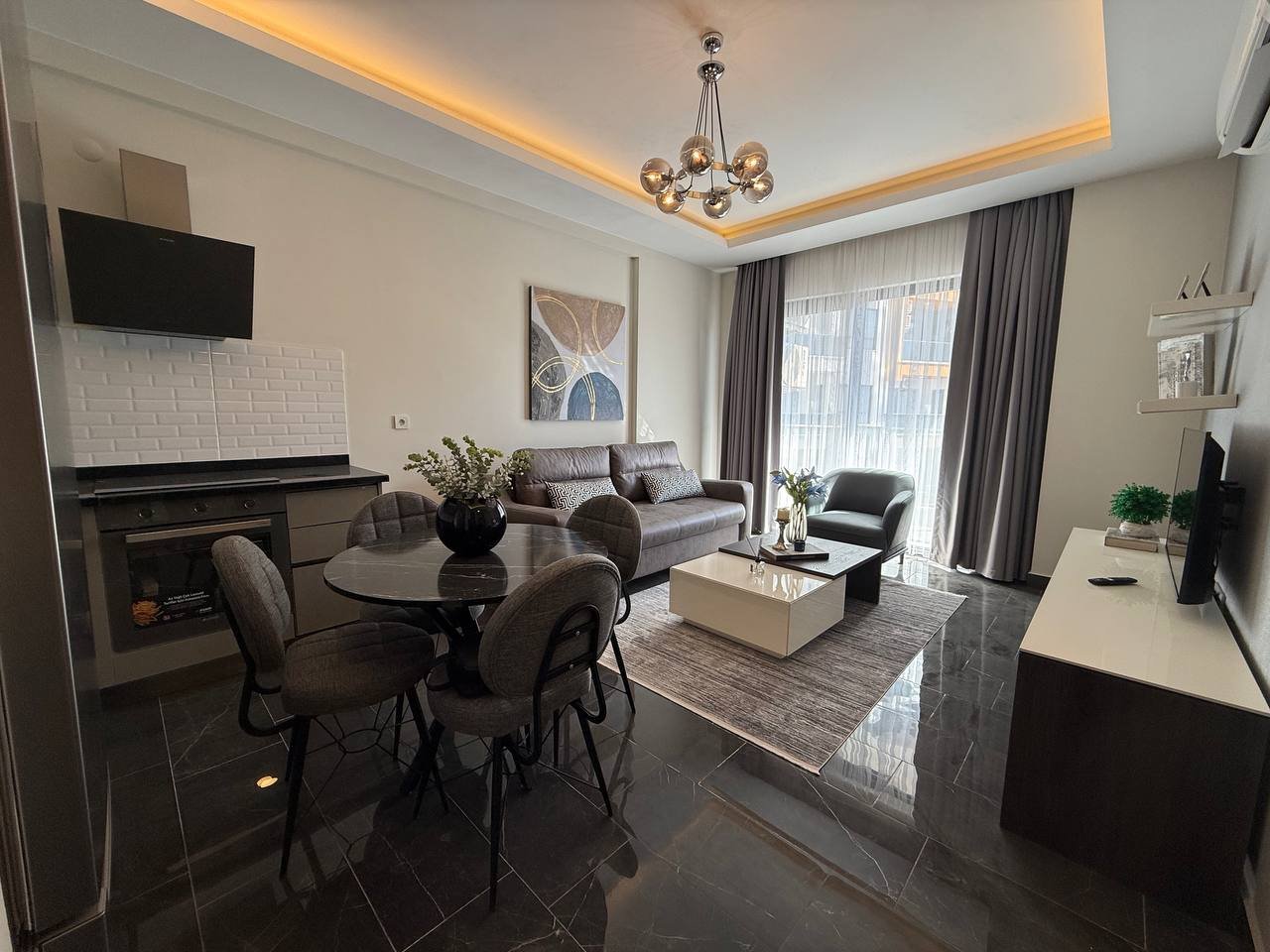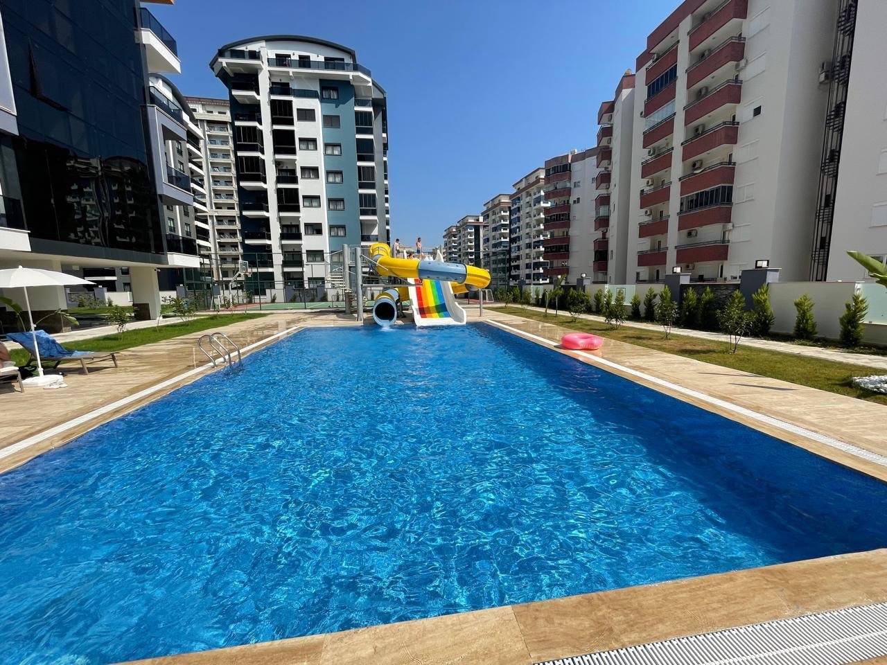 This fully furnished 1-bedroom apartment is located in Mahmutlar, 600 meters from the beach. Built in 2023, the residence offers extensive on-site facilities similar to a resort complex. Suitable for holiday stays or seasonal living for up to three people.